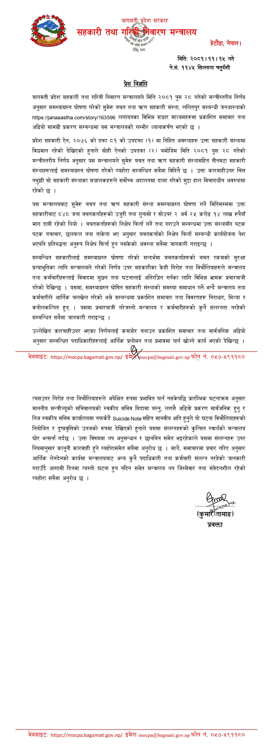 1 प्रेस विज्ञप्ति (समाचार तथा अन्य बिषय) -२०८१-११-१५ असोज १५, २०८२, बुधबार १६:११